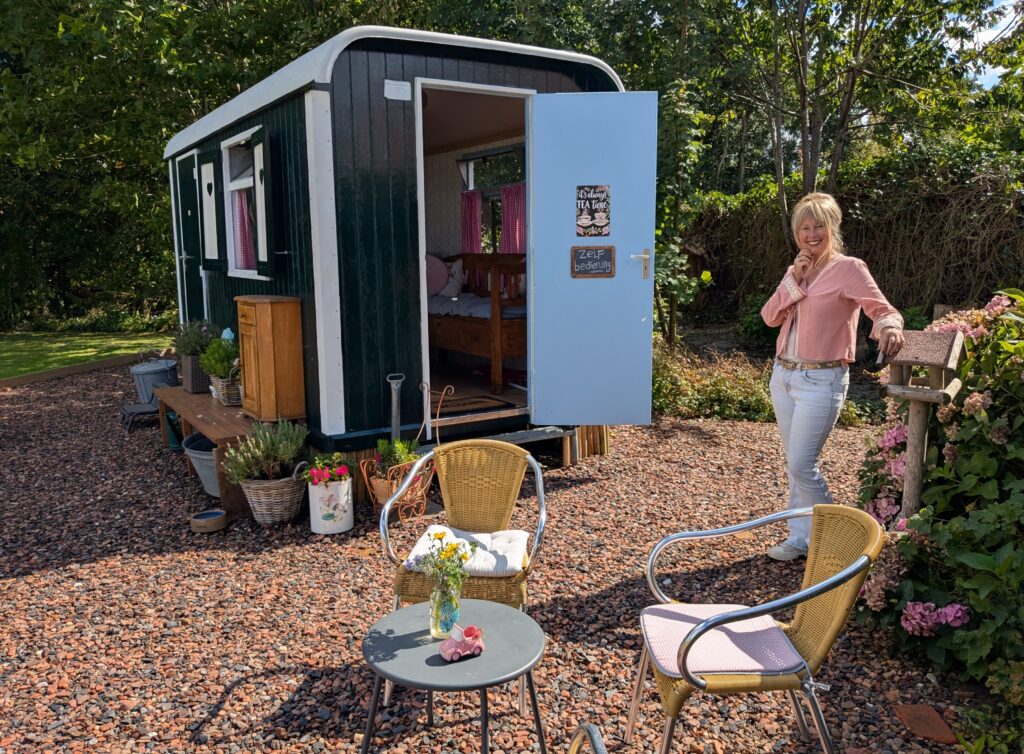 Haar prachtig gelegen pleisterplaats heeft ze nog maar enkele maanden. Steeds meer wandelaars en fietsers ontdekken hem. Het goede nieuws voor mensen met hoge nood: de pipowagen is voorzien van een toilet.