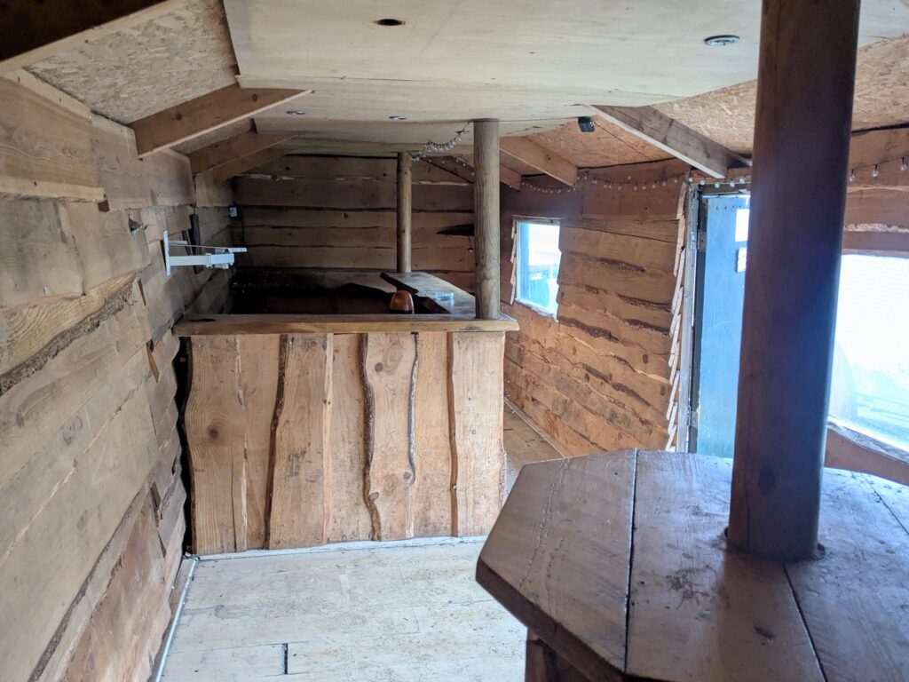 ´Van binnen is hij nog in goede staat, met nette houten betimmering. De bar is mooi. Overal zitten stroompunten en er is zelfs een stoppenkast. We gaan alles schoonmaken en er komt een nieuwe vloer in, plus nieuwe verlichting. We fleuren de wanden op met bordjes.´