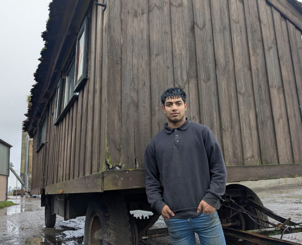 Boerenzoon Michel Dobbe (18) uit Winsum is sinds een week eigenaar van een mobiele keet. ´Ik zag ´m op Marktplaats en dacht: prima prijs en ik kan ´m verplaatsen. Van deze grootte – 10 bij 2,60 meter – zijn er maar weinig.´